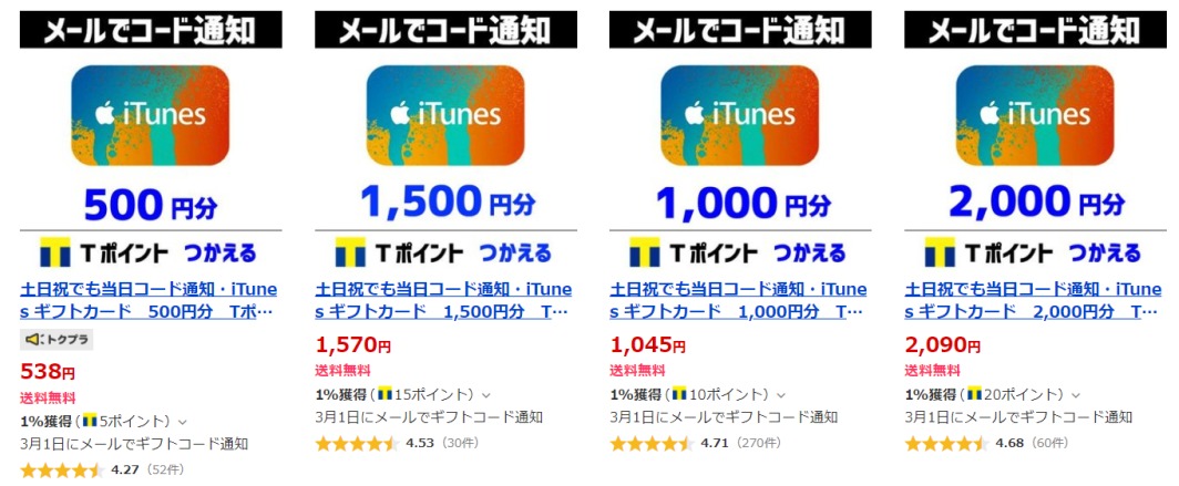 T ポイント itunes カード 購入